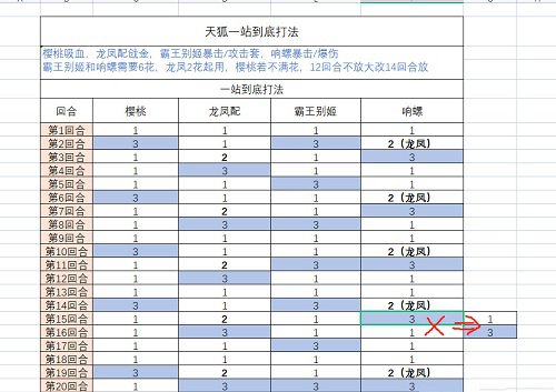 3、霸王别姬和响螺需要6花,龙凤2花起用,樱桃若不满花,12回合不放大改14回合放。