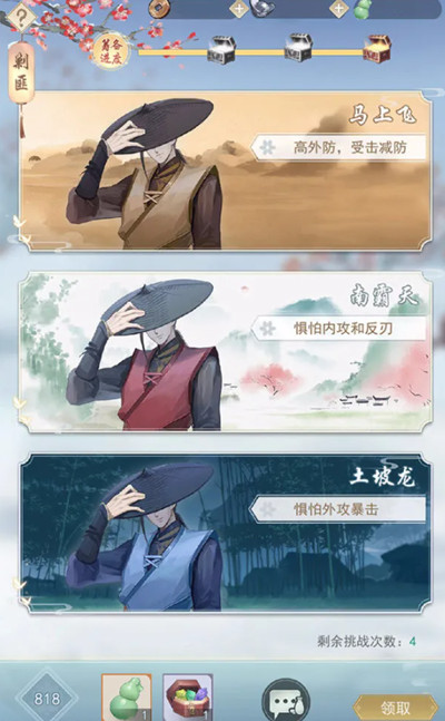 大侠每日拥有5此挑战次数,没用完的次数不累计至次日;**会根据玩家造成的**伤害,判定可以领取的奖励。