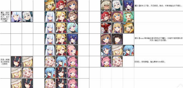 该表分为三部分:1.推图。2.塔。3.属性塔。所有阵容需要自行调整尝试