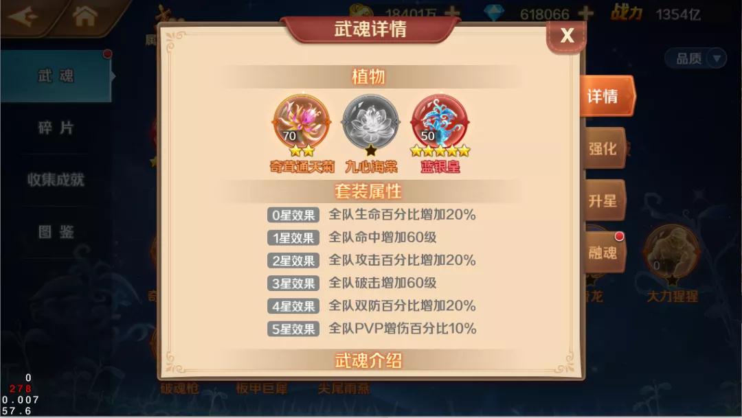 武魂升星需要使用武魂本体碎片,武魂的**越高,增加的属性越强。同时**越高,武魂的强化**上限越高。
