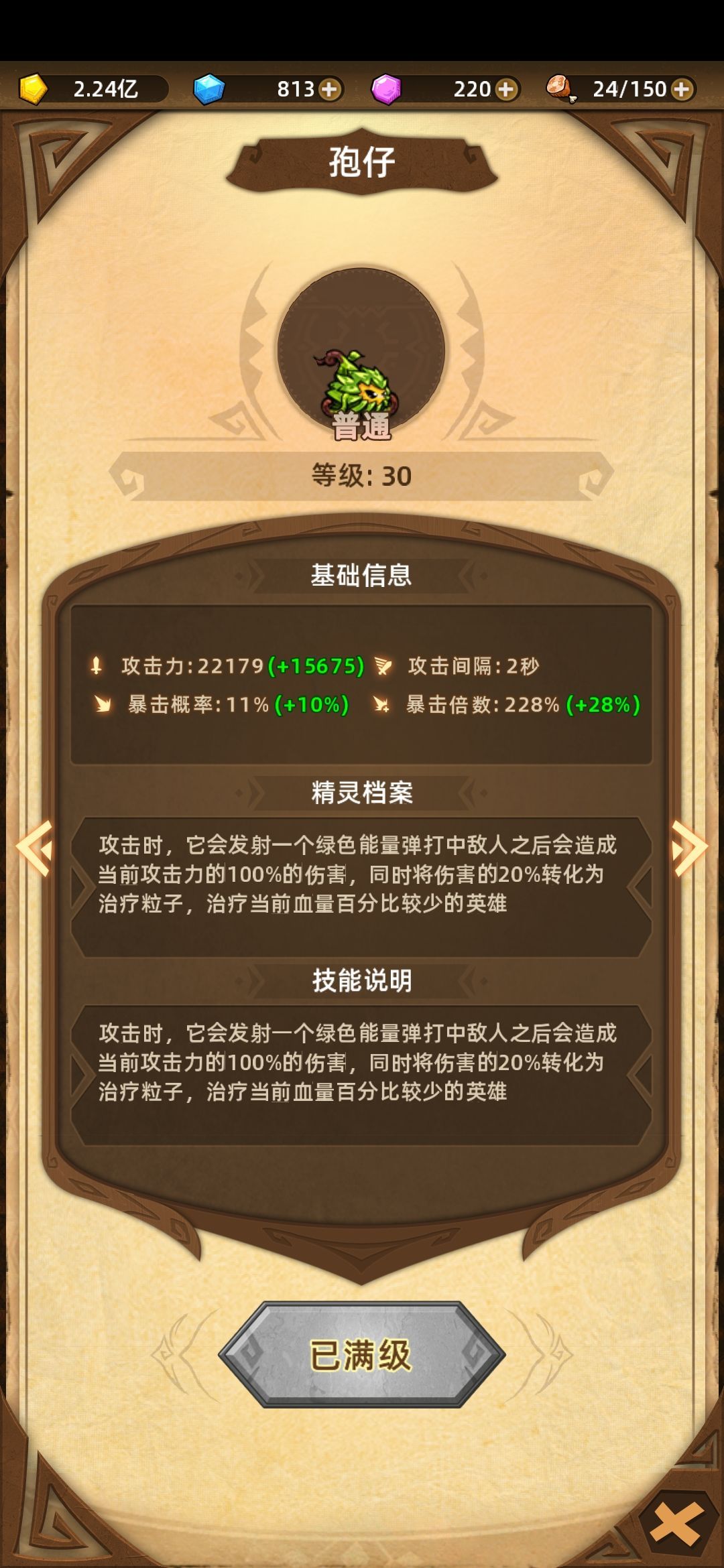 第二层秘境,迷你精灵孢仔。少有的回血精灵,虽然回血量少,后期等于没有,但前期带上它战斗很舒服,对平民玩家来说更是免费奶源,战斗必带。