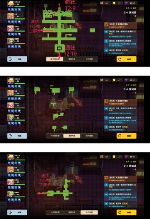 1:12-4关卡小地图(该关卡可通往12-3地上地下两部分,12-9,12-10,详情请看小地图)