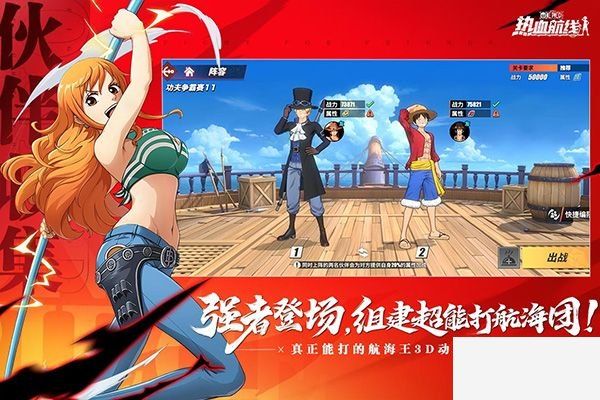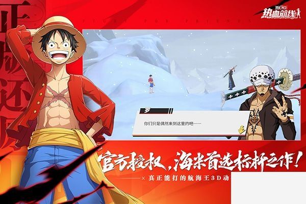 航海王热血航线是由中手游推出的根据经典动漫《ONE PIECE》改编的二次元日系角色扮演类手游,本作将会采用精美的3D风格来表现,同时利用卡通渲染来给玩家呈现出一个原汁原味的画风和丰富多彩的海贼世界,同时本作也高度还原了海贼系列的剧情故事,从踏上冒险开始到新世界,让你再一次体验热血与感动。