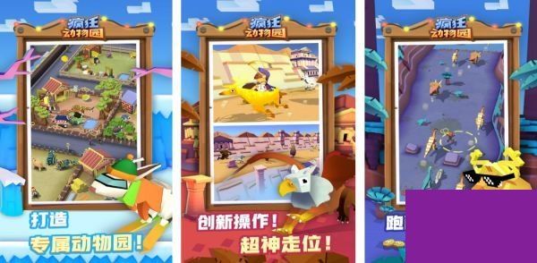 《疯狂动物园》是一款3D像素类的竞技动作手游。玩家在这里拥有西部牛仔的形象,化身成为方块世界的一员,需要手拿套圈追回受惊逃跑的动物。游戏的画风简单可爱、脑洞大开、给很多玩家带来了**。