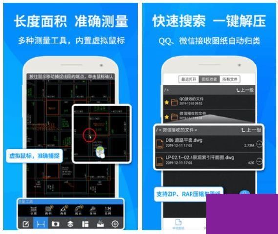 一款支持autocad的软件,可以实现电脑端的各种操作,也可以通过手机进行导入,提取文字、异形面积、模板面积、连续测量、角度、坐标等,您可以将图纸与标注轻松的同步到电脑或其他同事。