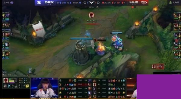 【15:00】DRX强开先锋,但是拼惩被Clid佛耶戈抢到了二先锋!后续团战Kingen酒桶单防住霞洛,Croco猴子交大招想跑但是被Viper厄斐琉斯狂风带走!HLE随后中路先锋推塔,经济优势拉开到5K,打出战略点!