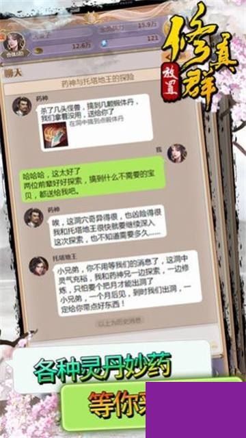 放置修真群游戏是款冒险卡牌手游,在这个游戏里面与天地相斗还可以与人战斗,以多种方式去磨练任务角色的能力,同时一群修真的人**都在一个群里,所有人都拥有自己的能力移山填海上天入地,可以跟随他们慢慢修真!