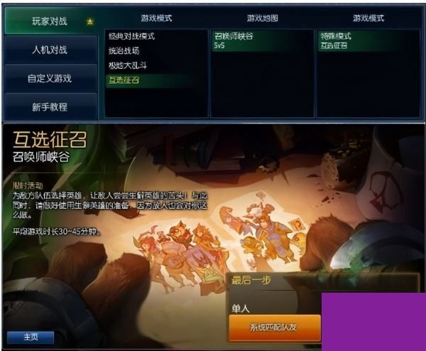 顾名思义,该模式下就是给对方选择英雄,该模式也是在上线一段时间后就销声匿迹了,没有再出计划。比起像星之守护者pve模式每年都有人提出要重新推出,互选征召模式算是被遗忘**。