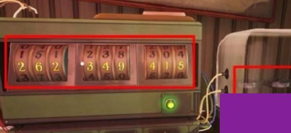 3、紧接着我们进入下图房间,完成探索以后,启动桌上的装置,旋转底部按钮将右侧的三款悬浮的磁片高度一致,就能获得数字密码【262、349、415】。