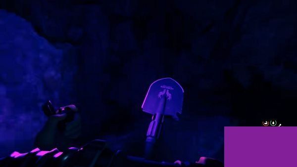 2、首先我们走到铲子**入口的位置,会发现路口被石头挡住了,靠近后会触发移开石头的剧情,然后从水滑梯下边出来;