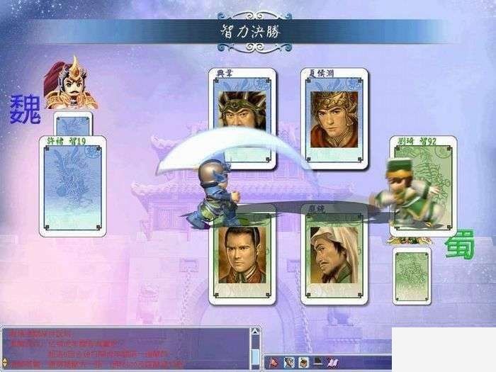 在《三国群英大富翁》中以**交战时,双方所派出的武将,将会以一对一的方式进行决斗。数百位的三国猛将、军师,各有不同专长,在智力决胜的情况下,诸葛孔明可轻易智取战神吕布;反之,在武力决胜时,老谋深算的司马懿也难敌虎痴许褚的一身蛮力。