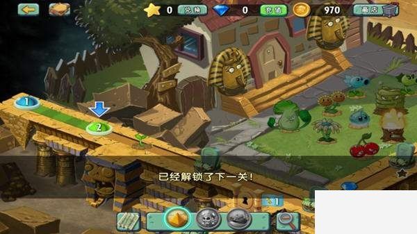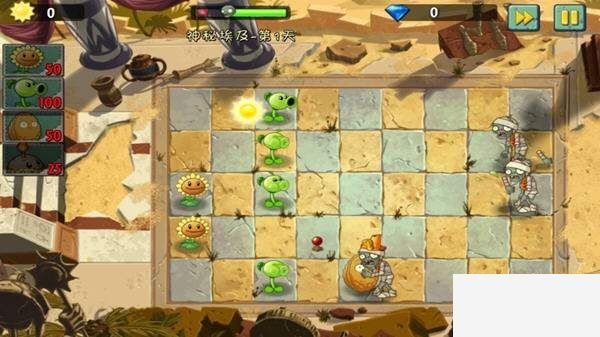 游戏的背景音乐在之前的草地场景中,就能听到熟悉的前作的背景音乐,虽然是前作的背景音乐但《植物大战僵尸2》在编曲上还加入了一些变换,别以为《植物大战僵尸2》就是简简单单的把前作背景音改变,