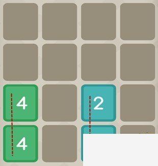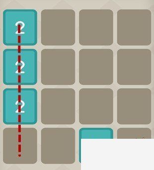 2、移动之后,制造了机会,可以再次移动合并这个数字,如图的线条。