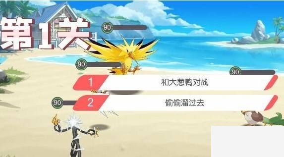 2、先选择**种和大葱鸭对战,跟大葱鸭对战是需要使用闪电鸟,电束木和纸御剑打死大葱鸭即可。