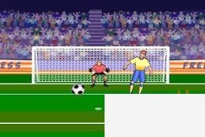 移动鼠标到右下角的射门指示上点击左键分别控制射门高度,角度,弧度,同时注意黄色箭头代表风向,黄色长条代表力度。射出球后点击continue继续,点击watch replay可回放。