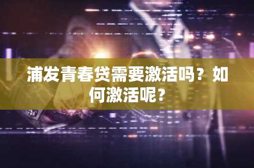 浦发青春贷需要激活吗?如何激活呢?