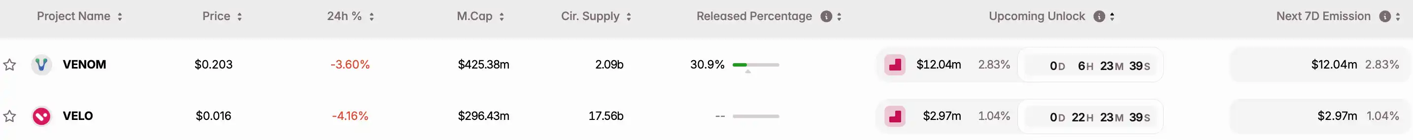 每日市场整体资金热度(根据资金费率反映)与**解锁