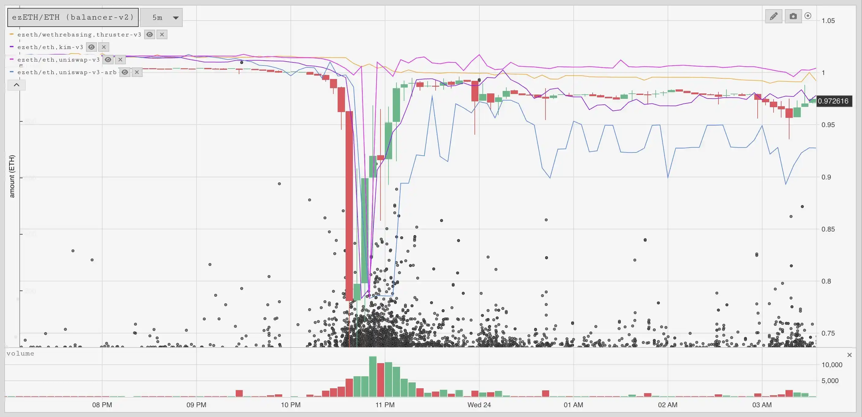 但若收益骤降或借贷利率飙升,盈利将迅速受损。主要风险聚焦于价格预言机设计。大量头寸依赖 AMM 预言机,易受临时价格脱锚影响,诱发连锁清算,迫使借贷方以大幅折价出售抵押资产,即便资产充足。Devens 以 ezETH/ETH 轮动的类似事件为警示。