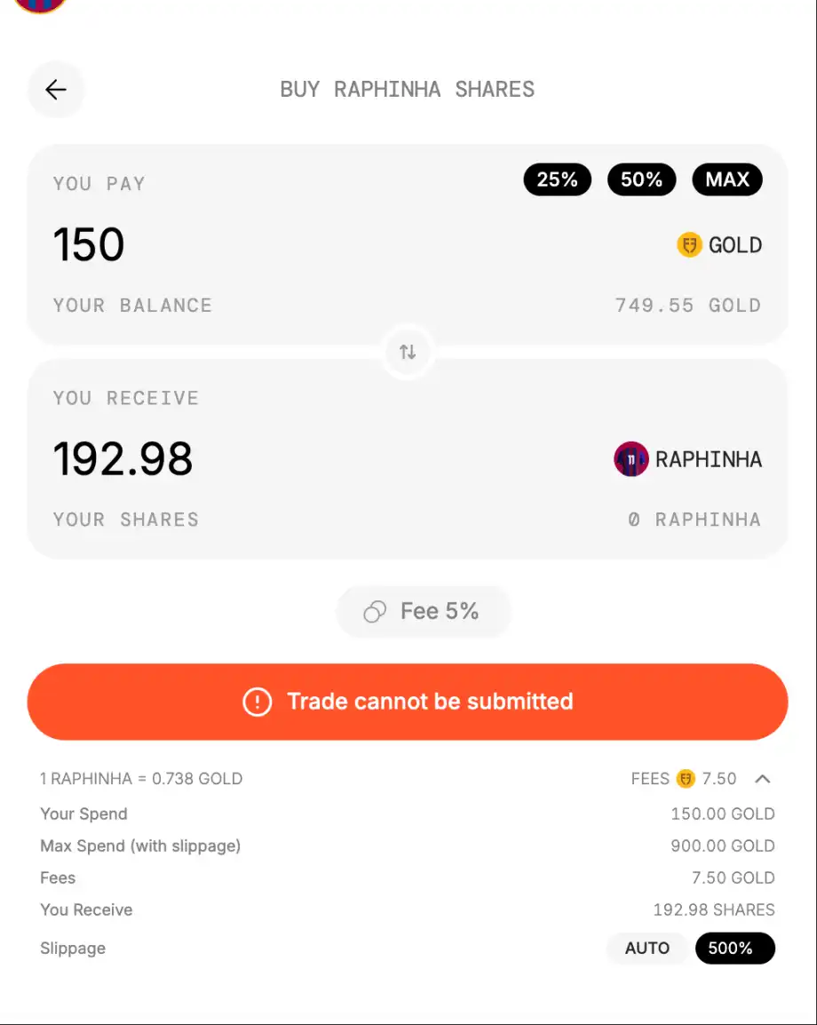 平台对每笔交易收取固定 5% 的基础手续费。此外,为防止单笔抛售过量冲击市场,系统还将在大额抛售和交易激增的情形下引入动态手续费机制(抛售量大时税率上升,交易异常时额外手续费,据社区成员反馈**达 25%)。