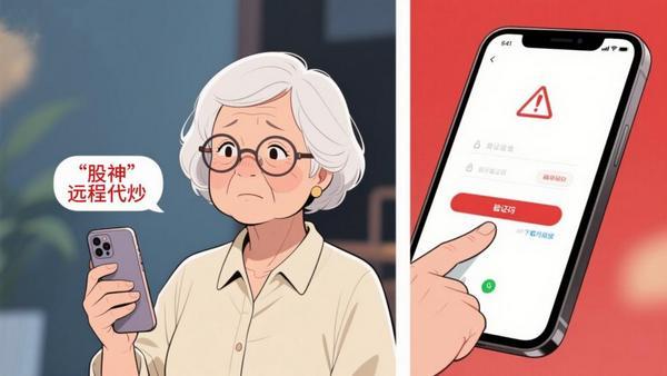 金阿姨抿了口水,神秘兮兮地说:“网上认识个‘股神’,能带我赚大钱。他让我下了个APP,说可以远程帮**作手机,省得我这老太太弄不明白。”