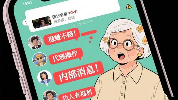 金阿姨慢慢道出前因:原来她最近迷上了网络自学炒股,微信里添加了好多陌生人,还被拉进好几个群组,群内满是“专家荐股”“**不赔”等极具诱惑力的宣传视频。事发前一日傍晚,一名“导师”通过微信指导她下载某炒股APP,并以“协助操作”为由,诱骗她发送手机验证码,远程操控完成了APP的注册和设置。