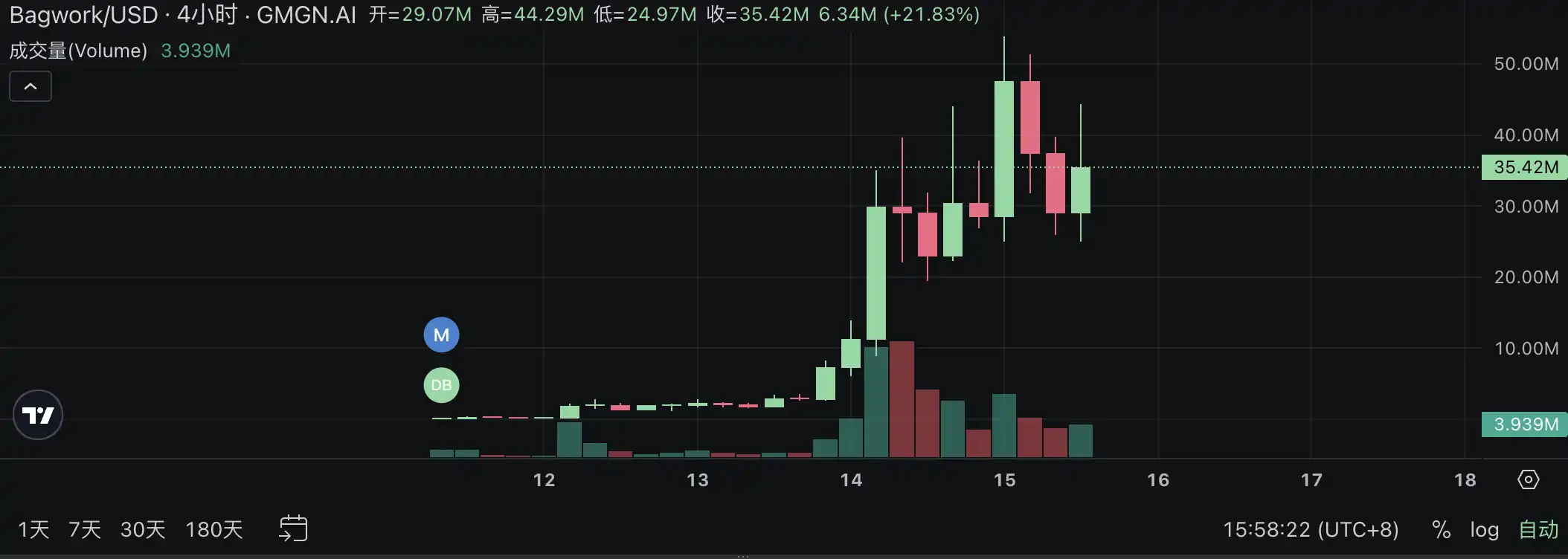 二级表现:Bagwork **仅上线 4 天,9 月 13 日晚起,市值从 250 万美元开始**,今晨市值**突破 5000 万美元,目前市值为 3500 万美元。