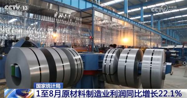 受市场需求增加、成本有所下降等因素带动,1—8月份,原材料制造业利润同比增长22.1%,较1—7月份加快10个百分点。其中,钢铁行业同比扭亏为盈,实现利润总额837.0亿元;有色行业利润增长12.7%,较1—7月份加快5.8个百分点。