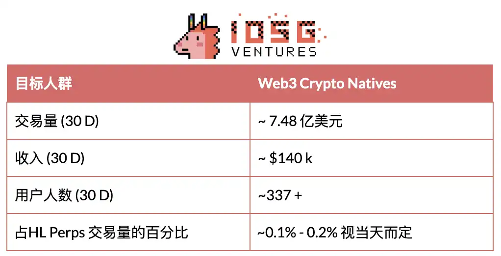 基于 HL 的原生移动应用浪潮已开启:BasedApp、Mass.Money、Dexari、Supercexy。这些应用日均交易量达 5 万美元(月重复收入 150 万美元),约占 HL 永续合约交易量的 3-6%,目标用户群体各异(加密原生用户、Web2 零售用户、专业交易者)。