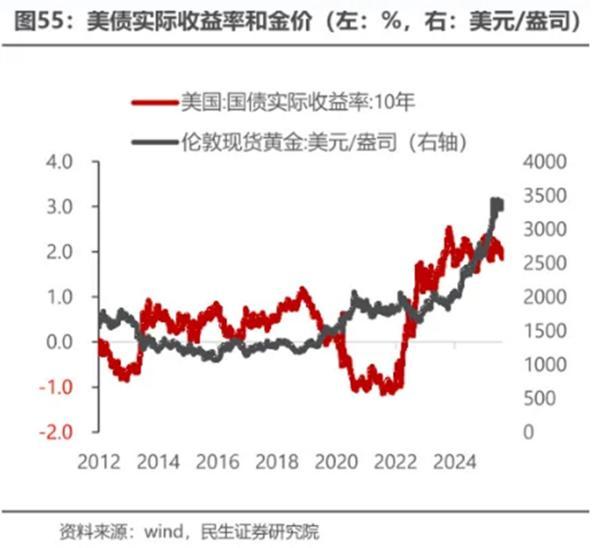 按过去的规律,黄金属于无息资产,当美债实际利率走高时,投资者会抛售黄金转投美债。但2022年俄乌战争后,即便美债实际利率持续高位,金价依旧一路狂飙。