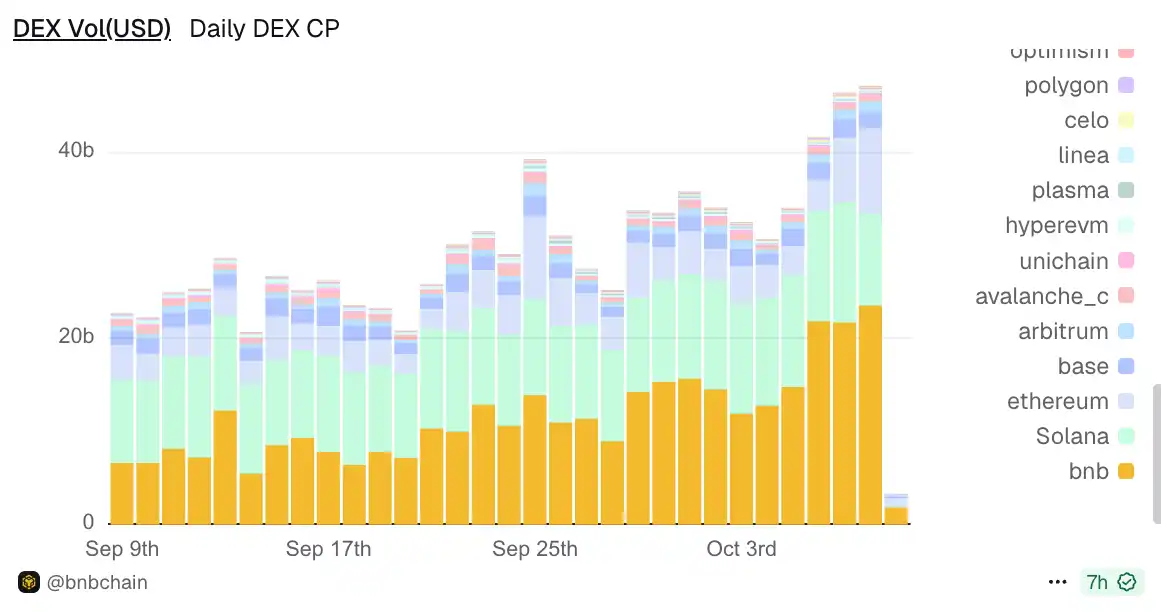 BSC 生态的热度正在经历一次由内向外的扩散,自 Aster 于 9 月中旬完成 **E 并启动第二阶段 Genesis 以来,整个生态的交易活跃度和链**动性均显著上升。随着「Aster Dawn」阶段的开启,这种势能进一步放大——不仅带动了多只 BNB meme 币的集中上线,也令去**化交易板块重新成为市场关注的焦点。