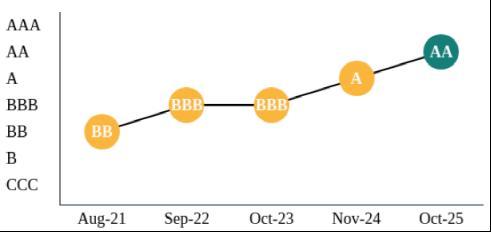 10月9日,**权威指数机构摩根士丹利资本**公司(明晟、MSCI更新2025年度环境、社会及治理(ESG评级信息,平安银行凭借在ESG方面的优异表现,**评级上调至**级,在五年内实现了从BB级到**级的**跃升。