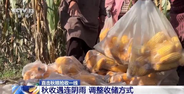 前些天趁着降雨间隙,张立中抢收回来一部分玉米,但为了抢时间,部分玉米采用装袋式堆积,很容易发霉。在农业专家建议下,张立中及时将储存方式调整为了“上架”模式。