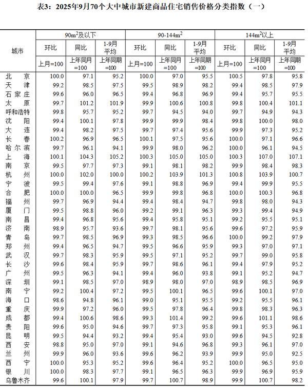 从环比维度看,各线城市新房价格普遍承压,但核心城市表现突出。****数据显示,9月,一线城市新建商品住宅销售价格环比下降0.3%,降幅比上月扩大0.2个百分点。其中,北京和上海分别上涨0.2%和0.3%,广州和深圳分别下降0.6%和1.0%。二线城市新建商品住宅销售价格环比下降0.4%,降幅扩大0.1个百分点。三线城市新建商品住宅销售价格环比下降0.4%,降幅与上月相同。