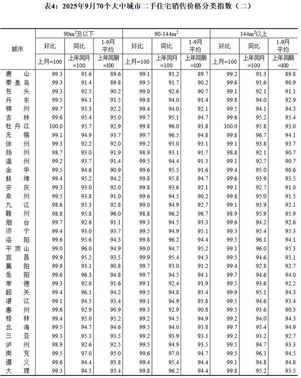 张大伟指出,二手房市场调整压力大于新房,**二手房均价已连续31个月环比下降,且四大一线城市悉数下跌、跌幅近1%。不过值得关注的是,9月一线城市二手房价格环比降幅与上月持平,二三线降幅进一步扩大,说明政策对价格的托底作用仍需时间显现。