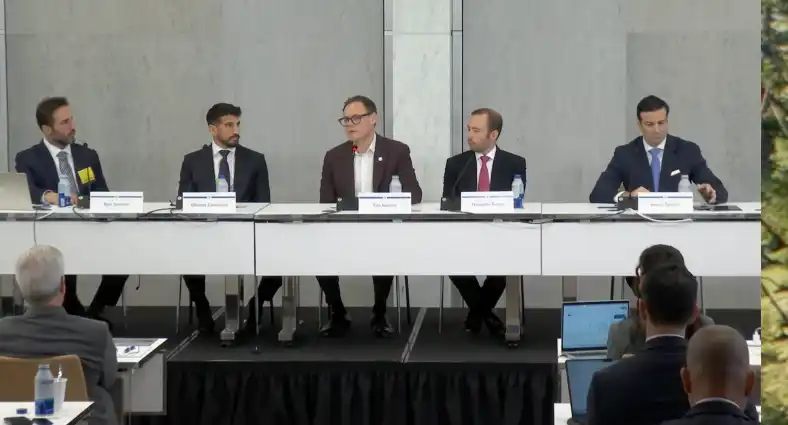 **个专题讨论的主题是「传统金融与数字资产生态的融合」。主持人是 Jito Labs 的**法务官丽贝卡·雷蒂格,台上坐着 Chainlink 的联合创始人谢尔盖·纳扎罗夫、Lead Bank 的 CEO 杰基·雷塞斯、Fireblocks 的 CEO 迈克尔·肖洛夫,还有纽约梅隆银行的资金服务与存托凭证全球主管詹妮弗·巴克。