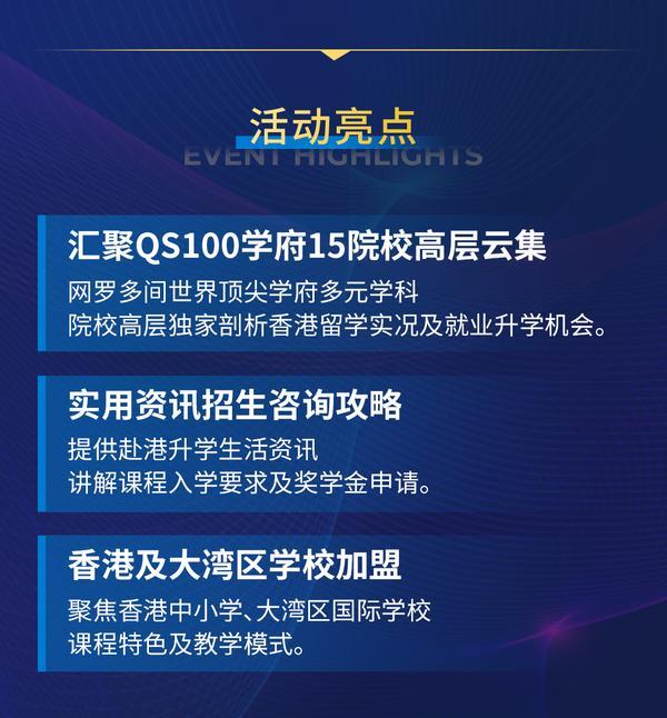 香港各大高校校长、副校长将带来精彩演讲,从香港高等学府特色、**专业详解,到招生政策、入学路径拆解,再到人才培养及就业分享……**都是家长和学生最关心的“干货”。这场论坛可谓是香港高校**的“官方指南”,再也不怕错过关键信息,更不必担心网上碎片化信息误导。