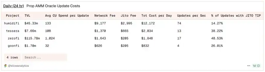 以 Solana 上的 Prop AMM HumidiFi 为例,据 @SliceAnalytics 数据,该做市商每秒更新报价高达 74 次。