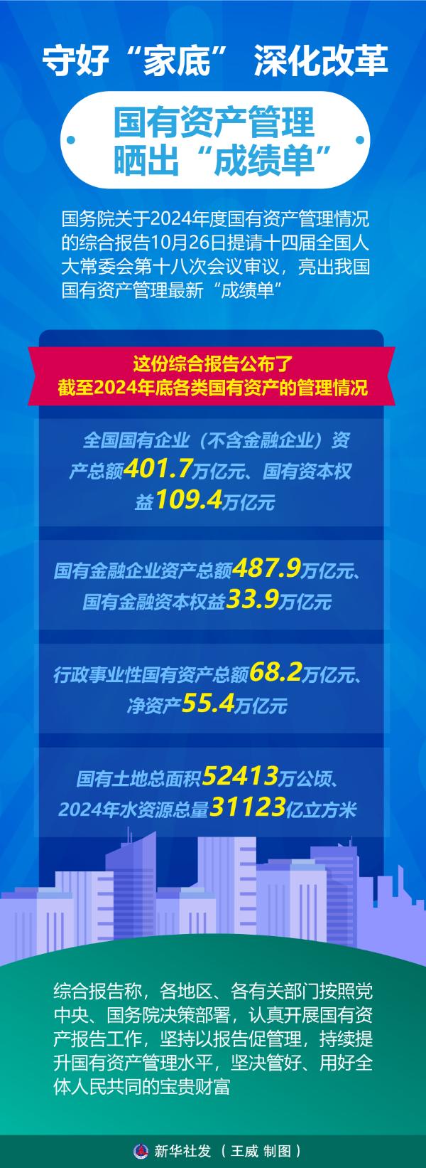 **院关于2024年度国有资产管理情况的综合报告26日提请十四届******会第十八次会议审议,亮出我国国有资产管理**“成绩单”。