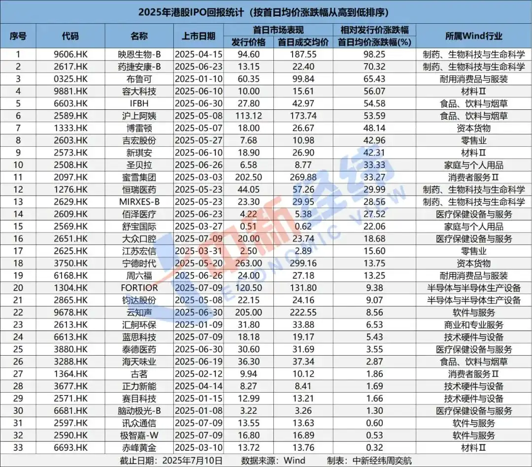 「港股打新的赚钱效应也是在 2024 年下半年就有所体现了,比如毛戈平上市首日上涨 70%,开启了打新小阳春行情,而在今年更是一**行情,」
