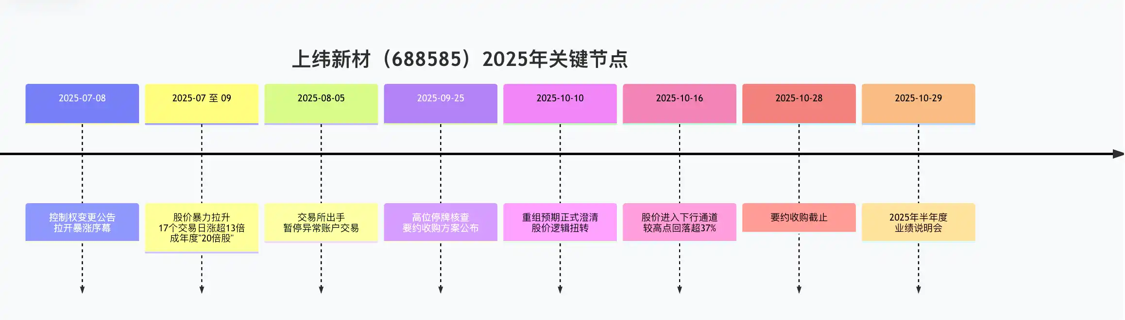 仅仅 17 个交易日,股价从个位数一路飙升,涨幅超过 13 倍。截至 9 月 25 日,上纬新材年内累计涨幅超过 2030%,成为 2025 年 A 股市场**只「20 倍股」。