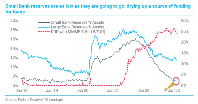 Amemiya 也持同一看法。尽管存款与货币市场基金等非存款投资工具的选择对银行很重要,但结束QT应该有助于保持比其他情况下更充足的准备金数量。其他很多银行正面临严重的银行挤兑风险,这一事实表明,美联储过度紧缩的风险越来越大,也支持美联储在短期内降息。与金融市场状况相比,累计加息不成比例地减少了通过银行**提供的信贷。
