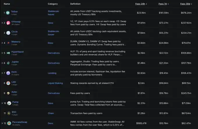 它们通常是「**的生意」:钱包(如 @phantom、@MetaMask);稳定币(如 USDT、USDC);交易所(如 @HyperliquidX、@Raydium、@JupiterExchange);启动平台(如 @pumpdotfun);机器人和交易终端(如 @AxiomExchange);DeFi 协议(如 @aave、@kamino、@LidoFinance)等等。