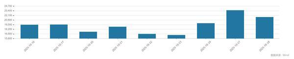 Wind数据显示,自10月16日A股结束连续40个交易日成交额超过2万亿元后,连续7个交易日的成交额均未能再次超过2万亿元。而在10月27日沪指逼近4000点的当天,市场成交额达到2.36万亿元。沪指成功站上4000点的周二(10月28日,市场成交额再次超过2万亿元达到2.17万亿元。