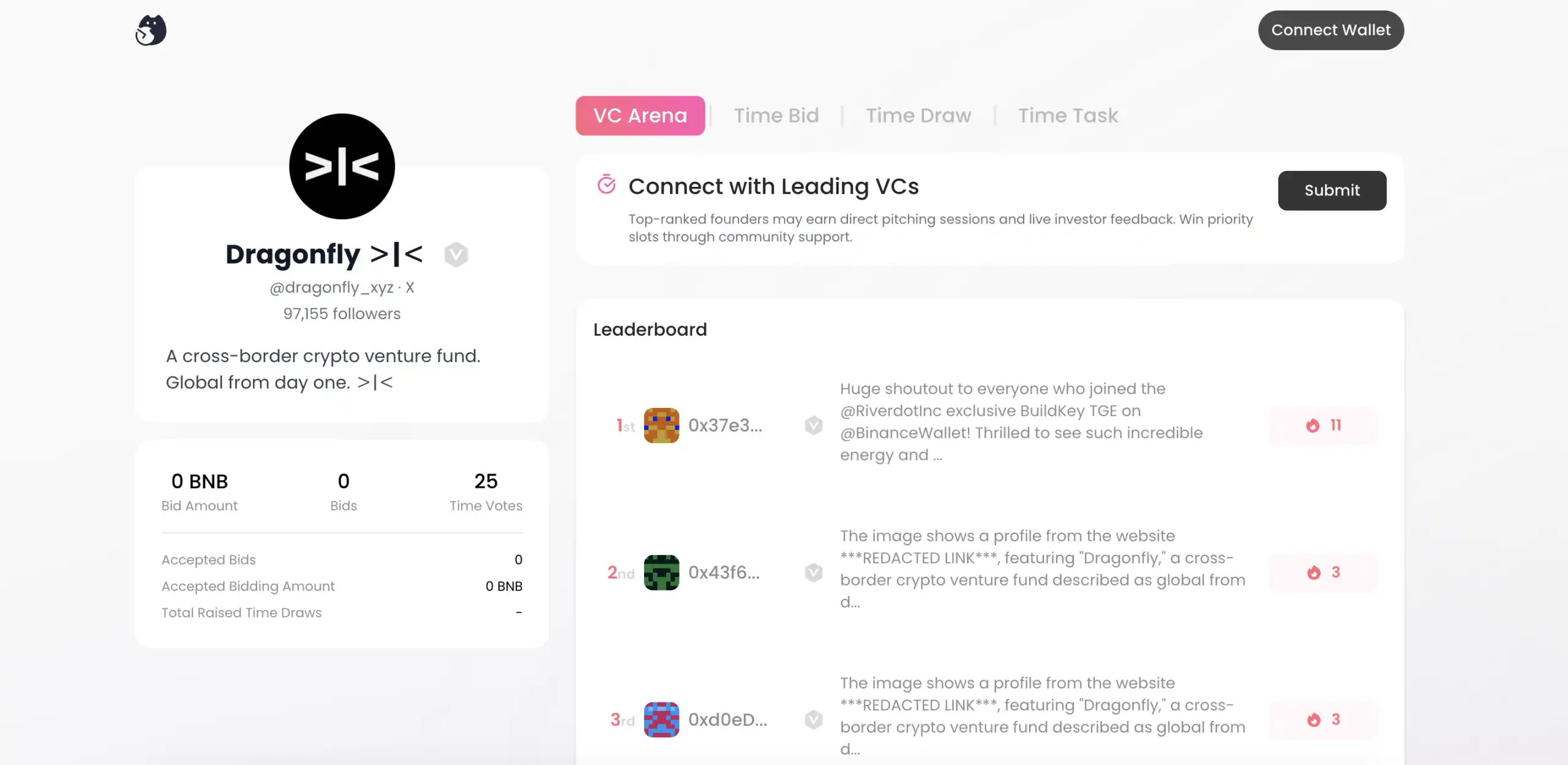 抛开概念来说,这就是个中介平台,强行与时间进行挂钩显得过分牵强,目前看来这三款产品虽然仍在运行但似乎已经没有了**活跃度。之后 Pieverse 推出的 VC Arena 则是获得了一些关注,该平台套用上述产品的机制撮合 VC 与初创项目团队的链接迎合了一些实际的需求。
