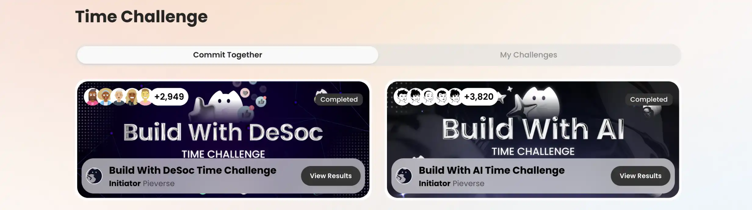 不知是否是意识到了设计思路的问题,Pieverse 转变了方向,推出了一款金融化程度更高,更有参与感的产品 Time Challenge。