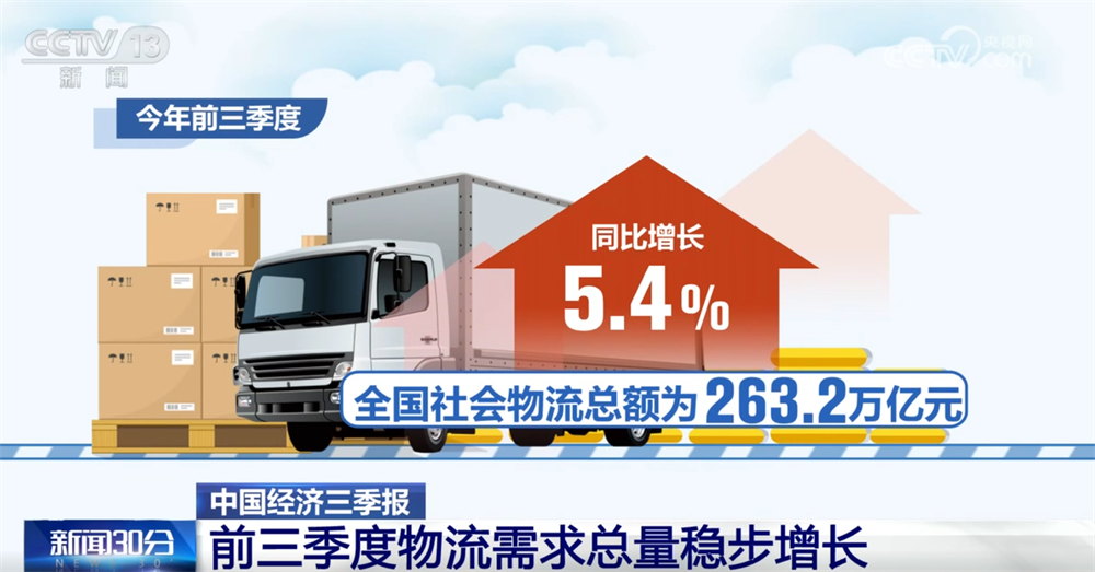 今年前三季度,**社会物流总额为263.2万亿元,同比增长5.4%。