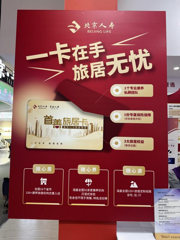 从适老化旅居线路模拟演示到“医康养护保”一体化服务流程展示,从老年人保障计划互动讲解到专属保险产品咨询,展台每一处设计都紧扣“让养老变享老”的核心理念,参观者可以直观感受到北京人寿在康养领域的扎实布局。