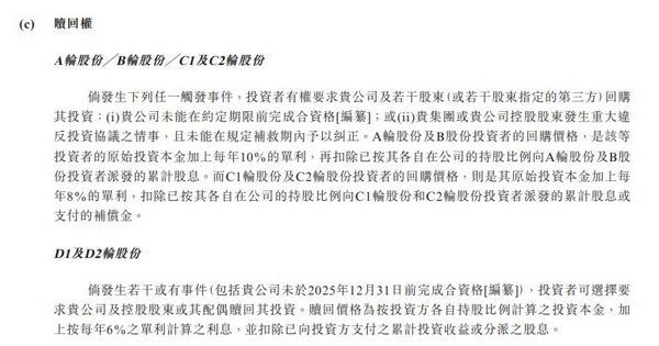此次,时隔仅12天火速再递表背后,是一份已进入倒计时的对赌协议在“施压”。上市申请文件显示,2024年12月8日,溜溜果园与当时的股东、华安基金及兴农基金签订增资协议,华安基金以4000万元认购121.0646万股股份(即D1轮股份,约占股1.80%;兴农基金以3500万元认购105.9315万股股份(即D2轮股份,占股1.57%。D1及D2轮融资中,溜溜果园与华安基金、兴农基金等投资者约定,若未能在2025年12月31日前完成合格上市,投资者有权要求公司及控股股东或其**赎回其投资,赎回价格为投资本金叠加每年6%的单利。