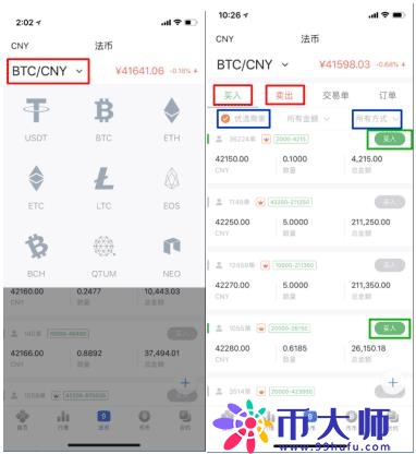 1.打开并登陆OKEx App,进入“法币”页面,选择想要交易的币种,以发布买入BTC交易为例: