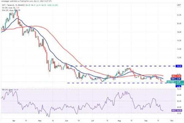 预计买家将大力捍卫 6 美元的水平,因为跌破并收于该水平下方可能预示着下跌趋势的恢复。DOT / USDT 对可能会跌至下一个主要支撑位 4